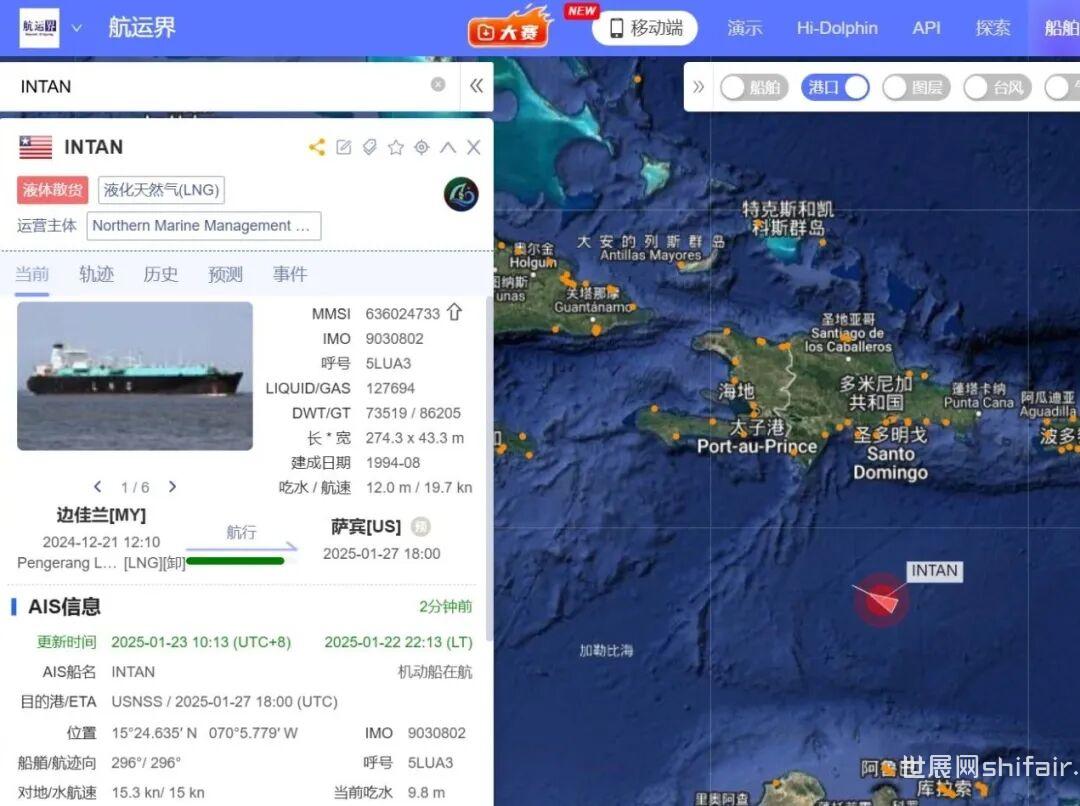 航运界网战略合作伙伴船视宝数据显示,“Intan”号(原名“Puteri Intan”)建于1994年,长274.3米,宽43.3米,悬挂利比里亚国旗。该船的上一港为马来西亚的边佳兰港,计划于1月27日抵达美国萨宾帕斯港(Sabine Pass)。据知情人士透露,该船负责运输美国生产的LNG,将部署在美国至波多黎各航线。若要重新悬挂美国国旗,船舶要经过美国海岸警卫队的检查,届时该船或将被更名为“American Energy”号。豁免条款的背景《琼斯法案》要求在美国港口之间货物必须由美国公民或永久居民建造、拥有和运营的船舶进行运输。同时,该法案又为在外国建造且在1996年之前完工的船舶提供了豁免条款,即允许它们将液化天然气(LNG)或液化石油气(LPG)从美国港口运输至波多黎各等地区。“Intan”号正符合这一特殊豁免条件,该船由法国著名的Chantier de l'Atlantique船厂建造。根据船舶数据库Equasis的记录,Crowley已于去年12月成为“Intan”号的注册船东。船视宝的船舶信息也证实了这一点。Crowley指出,该船是其“推动美洲能源解决方案的战略投资”的一部分。截至目前,该船东暂未公开具体的部署计划。分析人士指出,Crowley选择收购这艘船可能与豁免条款相关,尤其是在当前美洲地区对能源运输需求日益增长的背景下,该船舶将扮演重要角色。美国LNG运输船的建造历史美国曾在1970年代至1980年代间建造过16艘LNG运输船,这些船舶由General Dynamics、Newport News和Avondale三家船厂建造,使用了不同的储罐设计。这些船舶大部分已经退出市场,另有部分则悬挂他国船旗,用于国际贸易运输。
