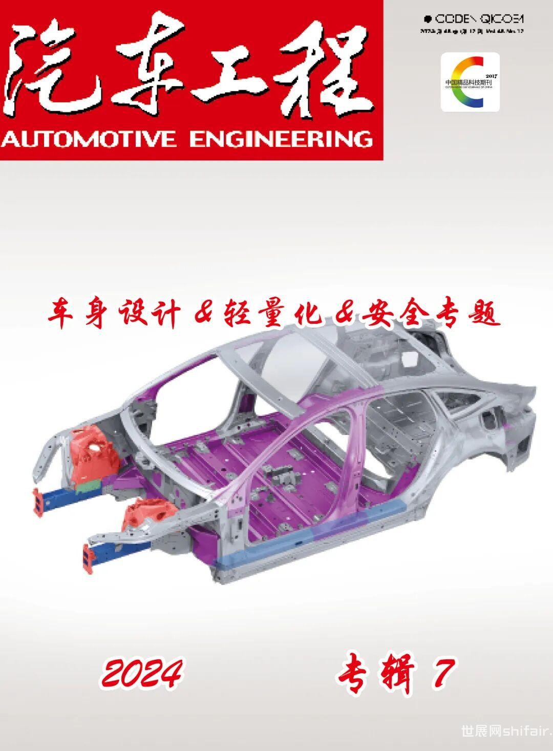 为方便科技工作者快速查阅信息,《汽车工程》编辑部将2024年度论文进行整理,形成8个分领域专题,包括:“智能网联汽车技术—感知 & HMI & 测评”“智能网联汽车技术—规划 & 决策”“智能网联汽车技术—控制”“新能源汽车技术—动力电池 & 燃料电池”“新能源汽车技术—电驱动 & 能量管理 & 热管理”“发动机 & 排放”“车身设计 & 轻量化 & 安全”和“底盘 & 动力学 & 整车性能”。专题7:车身设计 & 轻量化 & 安全1. 扫描下方二维码获取;2. 关注《汽车工程编辑部》公众号-底部菜单栏点击“在线期刊”-“虚拟专辑”获取;3. 点击文末左下角“阅读全文”获取。精密铸铝件一体化设计及在车身轻量化中的应用作者:谷先广; 陈红林; 俞陆新; 张代胜基于VRB/OW-GFRP混合结构的CTB电池包上盖总成轻量化设计研究作者:段利斌; 张雨; 杜展鹏; 刘冶钢; 孟祥新; 田冠男; 郑海洋; 吴闯热塑性碳纤维/尼龙6复合材料界面优化及零件快速成型工艺研究作者:高聪; 祝颖丹; 刘伯芳; 李铁虎; 王志白; 冯刚钢-铝混合驾驶室材料-结构轻量化设计作者:王超; 李明; 成艾国; 何智成; 于万元一体化压铸铝合金前机舱轻量化设计与优化作者:方志凌; 宋燕利; 康洁; 张杏红; 张丹一体压铸铝合金车身结构件的轻量化设计研究作者:刘波; 唐永鑫; 伍毅; 王紫阳; 杨琴; 胡铁刚; 徐小敏基于静强度和侧翻安全性的客车骨架轻量化作者:李晓艳; 余海燕; 楚遵康基于兰姆波的CFRP电池箱冲击损伤评估作者:李仲玉; 贺子桐; 王剑锋; 王兵; 刘逸群; 张君媛基于FFLD分析的汽车在极限凹坑路面工况下车身结构失效CAE新方法研究作者:卢晓; 汪隋铆接铝合金板铆钉失效缺陷检测方法研究作者:刘凉; 张滢; 史晨阳; 赵新华; 孟宪明; 刘增昌-30至50 ℃车辆工况下CO2喷射器的适应性研究作者:杨天阳; 邹慧明; 周晖; 王春磊; 田长青基于多对象离散拓扑优化方法的车身结构平台化设计作者:华钧伟; 侯文彬基于数据驱动的车身结构智能设计与分析作者:曹榕; 华钧伟; 李永成; 郭方俐; 侯文彬多胞铝合金薄壁管耐撞性分析与区间优化设计作者:钱立军; 俞陆新; 谷先广; 梁文宇一种基于传递路径分析的车身钣金振动对车内噪声影响分析及控制方法作者:李永超; 赵禹; 陈欢欢; 王虎; 张荣荣3D打印梯度随机蜂窝夹芯结构耐撞性研究与多目标优化设计作者:罗耿; 柴成鹏; 祝召飞; 陈轶嵩热成形钢电阻点焊断裂模式与失效力预测研究作者:毛立忠; 田畅; 徐忠伟; 鲁月; 田洪生; 程晨车架与电池舱一体化结构轻量化与疲劳寿命集成优化设计作者:孟子皓; 王登峰; 张小朋; 张子峰; 连丰民; 陈静考虑缺陷的一体压铸铝合金弹塑性本构及断裂准则研究作者:翟强强; 吴迪; 张涵寓; 刘钊; 朱平前机舱复杂薄壁结构设计与性能研究作者:孟宪明; 任鹏飞; 张赛冲压模具结构拓扑—尺寸联合优化设计方法作者:严磊; 杨姝; 亓昌基于晶界强化的多晶体点阵超材料设计与耐撞性研究作者:罗耿; 肖尧之; 薛凯峰; 陈轶嵩变截面空心矩形前轴的设计及垂向、纵向工况性能的研究作者:王连东; 李金蔚; 冯凯; 张宇; 田野基于路况识别及素材谱的汽车用户路线疲劳损伤获取研究作者:苏亮; 吴道俊; 陈泉泉车辆开闭件疲劳性能分析与验证作者:刘哲; 李辉; 高大威; 高云凯基于图网络的汽车零部件应力场快速预测方法研究作者:高泽; 楚遵康; 石稼晟; 林滏; 饶卫雄; 余海燕汽车安全性测评规程现状及趋势展望作者:胡林; 谷子逸; 王丹琦; 王方; 邹铁方; 黄晶车载自组网络下基于量子随机数的高效组密钥分发方案作者:石琴; 单榴; 程腾; 刘强; 王川宿; 张星基于BP神经网络的儿童乘员头部损伤预测模型及评估参数研究作者:王彦鑫; 李海岩; 崔世海; 贺丽娟; 吕文乐汽车-动力两轮车碰撞前驾驶员风险感知研究作者:王兴华; 胡林; 彭勇; 伍贤辉; 向国梁; 许倩车人碰撞中人地接触损伤仿真及防护方法鲁棒性分析作者:邹铁方; 刘志旗; 袁湘婷; 曹太山; 刘朱紫考虑工作记忆容量和时间压力影响的驾驶绩效分析作者:袁伟; 张会明; 赵天欣; 郭应时; 王畅MPDB工况下驾驶员姿态对损伤风险的研究作者:韩勇; 李明旺; 张悦苁; 徐国超; 潘迪不同肩带力、夹紧锁舌或限力插锁对正面刚性墙碰撞中二排HIII-5F假人响应影响研究作者:赵庆波; 伏小龙; 吴志国; 张晓乾; 韩帅; 吴思面向行人分类保护的汽车气囊式吸能装置研究作者:闫凯波; 舒洋; 陆思思; 段辉; 杨杰面向汽车安全的中国体征50th百分位男性乘员生物力学模型开发及验证作者:李海岩; 慕鹏飞; 王彦鑫; 冉令华; 崔世海; 贺丽娟; 吕文乐; 阮世捷AEB工况下驾驶员姿态对损伤风险的影响作者:韩勇; 张悦苁; 李明旺; 潘迪; 张海洋基于证据深度学习的CAN网络入侵检测框架作者:石琴; 李志伟; 程腾; 张强; 王文冲仿吸管吸能模块夹层发罩及其头部损伤防护效能研究作者:邹铁方; 陈得着; 李奇奇基于机器学习的变形模式控制耐撞性优化作者:李治祥; 祝丹晖; 张佳欢后倾乘员碰撞损伤与防护研究综述作者:沈文轩; 戴睿; 谭普元; 周青基于BEGAN的汽车CAN网络入侵检测数据增强方法研究作者:汪想; 刘蓬勃; 赵剑; 范科峰; 李琳辉异质车型影响下智能汽车二维碰撞风险预测作者:朱甲梁; 刘巧斌; 杨帆; 杨路; 李巍华关于《汽车工程》