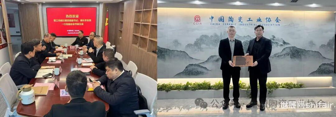 2月25日,中国陶瓷工业协会理事长刘挺会见晋江市磁灶镇党委副书记、镇长李友加一行,双方就进一步加强合作、推动建筑卫生陶行业高质量发展进行了会谈。中国陶瓷工业协会常务副理事长吴越申、副理事长侯文全、秘书长樊瑞新出席会谈。