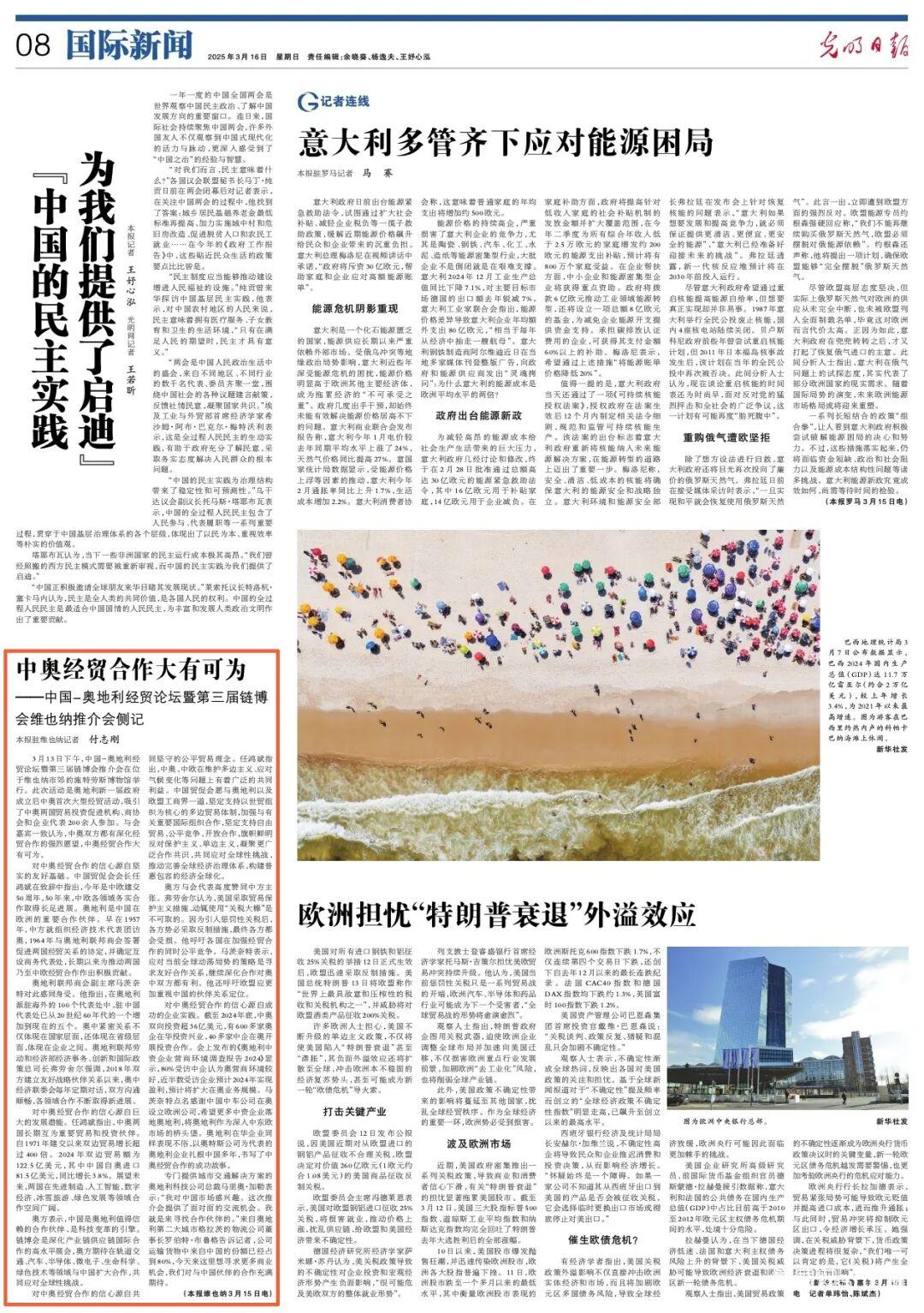 3月13日下午,中国-奥地利经贸论坛暨第三届链博会推介会在位于维也纳市郊的施特劳斯博物馆举行。此次活动是奥地利新一届政府成立后中奥首次大型经贸活动,吸引了中奥两国贸易投资促进机构、商协会和企业代表200余人参加。与会嘉宾一致认为,中奥双方都有深化经贸合作的强烈愿望,中奥经贸合作大有可为。对中奥经贸合作的信心源自坚实的友好基础。中国贸促会会长任鸿斌在致辞中指出,今年是中欧建交50周年,50年来,中欧各领域务实合作取得长足进展。奥地利是中国在欧洲的重要合作伙伴。早在1957年,中方就组织经济技术代表团访奥,1964年与奥地利联邦商会签署促进两国经贸关系的协定,并确定互设商务代表处,长期以来为推动两国乃至中欧经贸合作作出积极贡献。奥地利联邦商会副主席马茨奈特对此感同身受。他指出,在奥地利派驻海外的100个代表处中,驻中国代表处已从20世纪60年代的一个增加到现在的五个。奥中紧密关系不仅体现在国家层面,还体现在省级层面,体现在企业之间。奥地利联邦劳动和经济部经济事务、创新和国际政策总司长弗劳舍尔强调,2018年双方建立友好战略伙伴关系以来,奥中经济联委会每年定期对话,双方沟通顺畅,各领域合作不断取得新进展。对中奥经贸合作的信心源自巨大的发展潜能。任鸿斌指出,中奥两国长期互为重要贸易和投资伙伴。自1971年建交以来双边贸易增长超过400倍。2024年双边贸易额为122.5亿美元,其中中国自奥进口81.5亿美元,同比增长3.8%。展望未来,两国在先进制造、人工智能、数字经济、冰雪旅游、绿色发展等领域合作空间广阔。奥方表示,中国是奥地利值得信赖的合作伙伴,是科技变革的引擎。链博会是深化产业链供应链国际合作的高水平展会,奥方期待在轨道交通、汽车、半导体、微电子、生命科学、绿色技术等领域与中国扩大合作,共同应对全球性挑战。对中奥经贸合作的信心源自共同坚守的公平贸易理念。任鸿斌指出,中奥、中欧在维护多边主义、应对气候变化等问题上有着广泛的共同利益。中国贸促会愿与奥地利以及欧盟工商界一道,坚定支持以世贸组织为核心的多边贸易体制,加强与有关重要国际组织合作,坚定支持自由贸易、公平竞争、开放合作,旗帜鲜明反对保护主义、单边主义,凝聚更广泛合作共识,共同应对全球性挑战,推动完善全球经济治理体系,构建普惠包容的经济全球化。奥方与会代表高度赞同中方主张。弗劳舍尔认为,美国采取贸易保护主义措施、动辄使用“关税大棒”是不可取的。因为引入惩罚性关税后,各方势必采取反制措施,最终各方都会受损。他呼吁各国在加强经贸合作的同时公平竞争。马茨奈特表示,应对当前全球动荡局势的策略是寻求友好合作关系,继续深化合作对奥中双方都有利。他还呼吁欧盟应更加重视中国的伙伴关系定位。对中奥经贸合作的信心源自成功的企业实践。截至2024年底,中奥双向投资超36亿美元,有600多家奥企在华投资兴业,40多家中企在奥开展投资合作。会上发布的《奥地利中资企业营商环境调查报告2024》显示,80%受访中企认为奥营商环境较好,近半数受访企业预计2024年实现盈利,预计将扩大在奥业务规模。马茨奈特点名感谢中国中车公司在奥设立欧洲公司,希望更多中资企业落地奥地利,将奥地利作为深入中东欧市场的桥头堡。奥地利在华企业同样表现不俗,以奥特斯公司为代表的奥地利企业扎根中国多年,书写了中奥经贸合作的成功故事。专门提供城市交通解决方案的奥地利科技公司总裁马里奥·加勒表示:“我对中国市场感兴趣。这次推介会提供了面对面的交流机会。我就是来寻找合作伙伴的。”来自奥地利第二大城市格拉茨的物流公司董事长罗伯特·布鲁格告诉记者,公司运输货物中来自中国的份额已经占到80%,今天来这里想寻求更多商业机会,我们对与中国伙伴的合作充满期待。来源:光明日报编辑:陈增热 点 资 讯