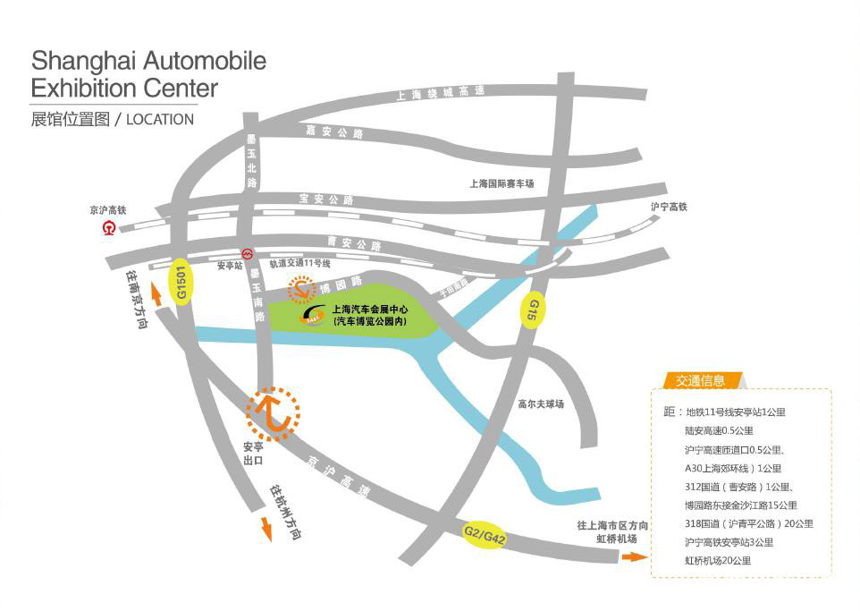 展馆:上海汽车会展中心地址:上海市嘉定区安亭镇博园路7575号         上海汽车会展中心