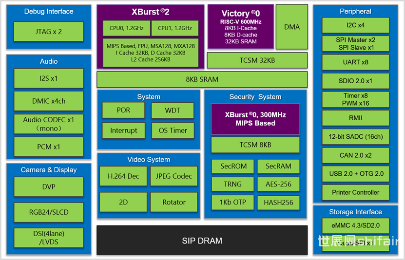 产品介绍:CCD5001采用先进的12nm车规级工艺,搭载HIFI5 DSP内核,拥有业界领先的指令集效率和高达6.4GFLOPS的单核算力,较对标产品ADSP21565在音频处理FIR性能上提升两倍有余。该芯片不仅在设计上全面对标国际高端产品,更在FIR/IIR硬件加速器和ASRC异步采样率转换等功能上进行了创新优化,为车载音频应用提供了强大的硬件支持。此外,CCD5001还具备16个全双工音频串行输入/输出端口,支持多达256个音频通道,能够满足杜比Atoms全景声等高端音效技术的需求。CCL1600B气囊点火芯片产品介绍:CCL1600B系列实现了Pin to Pin对标博世CG90X系列,是国内首款自主研发的安全气囊点火驱动专用芯片。 1、技术特点是将电源模块、触发回路模块、传感器接口模块和安全模块高度集成于单一芯片之中,提供16路安全气囊点火回路,6路PSI5传感器接口,10路电阻或霍尔元件检测通路 2、与CG90X相比,增加了1路CAN收发器,增加了1路LDO电源,优化了安全检测和诊断功能3、产品已获得功能安全领域最高等级认证ISO 26262 ASIL-D 、汽车行业通用测试标准AEC-100认证。北京君正集成电路股份有限公司 展位号:13G01北京君正集成电路股份有限公司成立于2005年,基于创始团队创新的CPU设计技术,迅速在消费电子市场实现SoC芯片产业化,2011年5月公司在深圳创业板上市。君正在处理器技术、多媒体技术和AI技术等计算技术领域持续投入,其芯片在智能视频监控、AIoT、工业和消费、生物识别及教育电子领域获得了稳健和广阔的市场。2020年,君正完成对美国ISSI的收购。ISSI面向汽车、工业和医疗等领域提供高品质、高可靠性的存储器产品,君正将整合其积累十几年的计算技术,及ISSI三十余年的存储、模拟和互联技术,利用公司拥有的完整车规芯片质量和服务体系,为汽车、工业、AIoT等行业的发展持续做出贡献。X2600 产品介绍:X2600 是一款面向商业和工业应用的多核异构跨界微处理器。它以 XBurst2 (MIPS)、Victory0 (RISC-V) 和 XBurst0 的组合作为计算核心。除了常见于应用处理器中的强大计算能力外,X2600 同时还兼具低功耗的实时控制能力。X1600