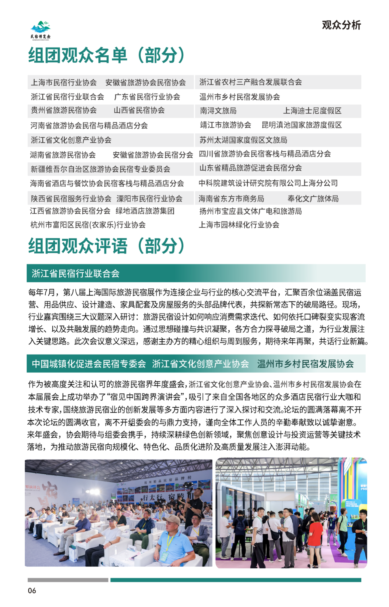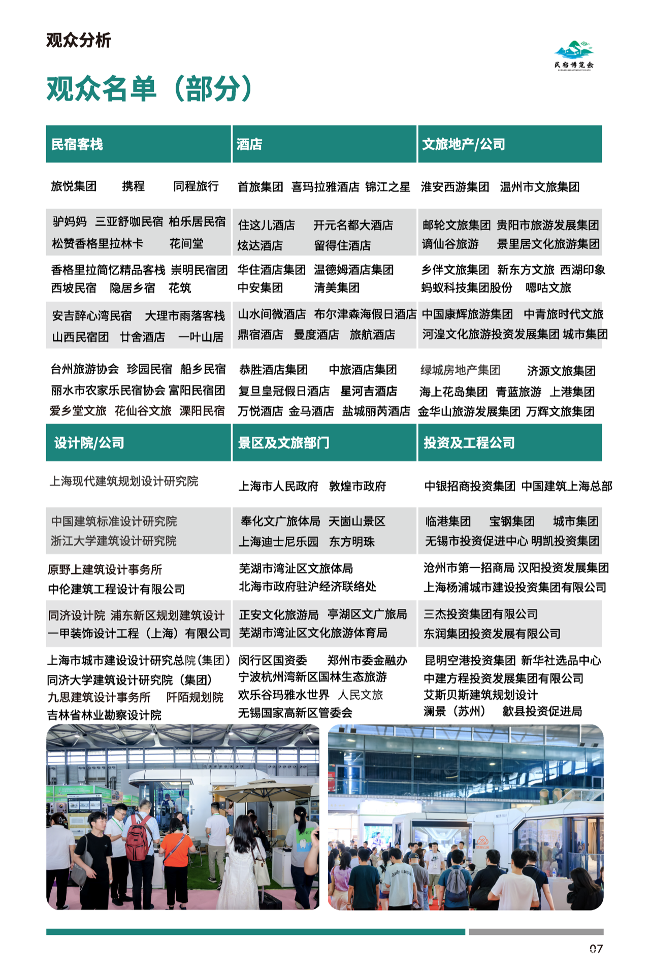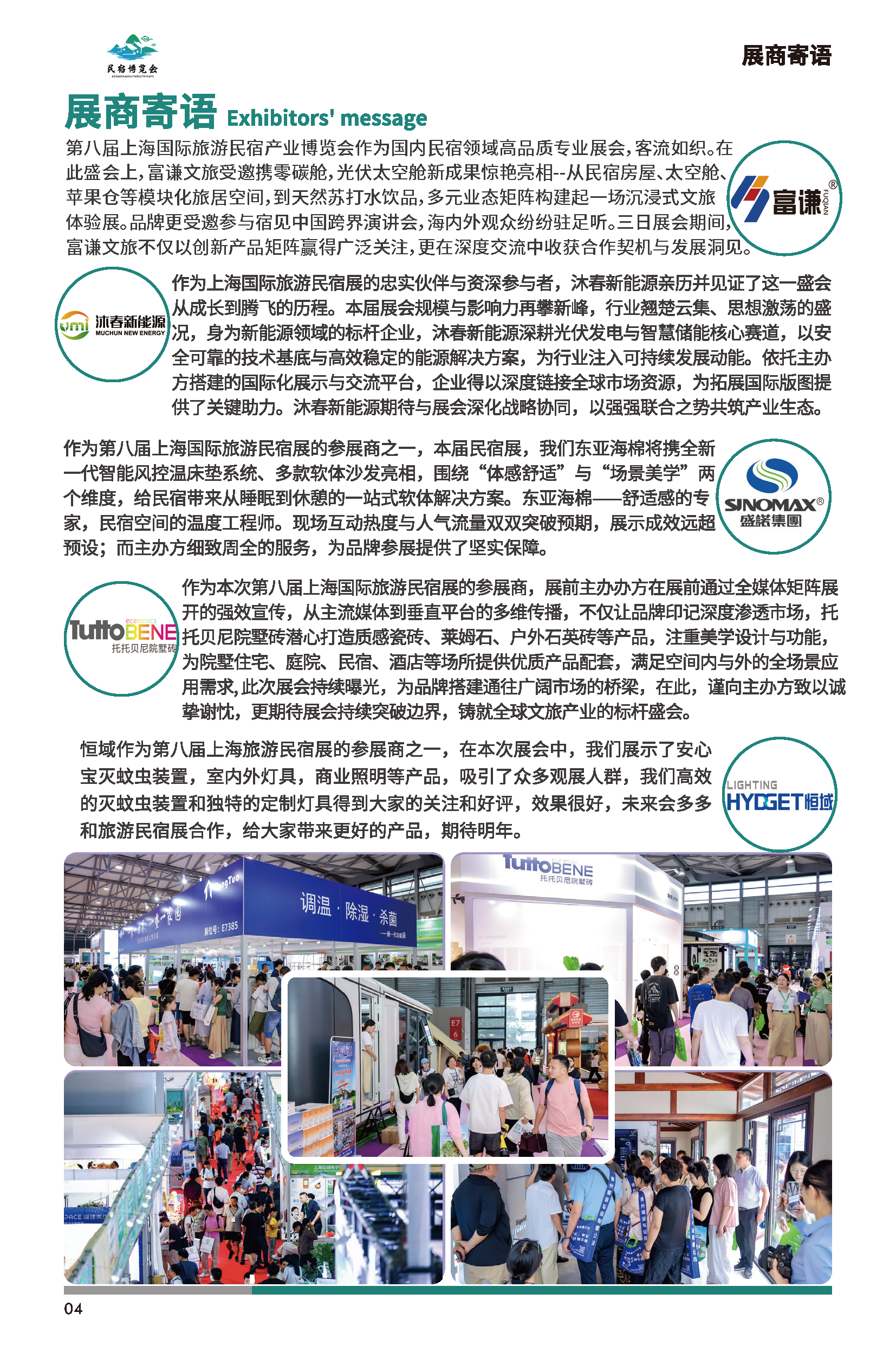 2025 BBR旅游民宿展|展后报告一览具体信息请查看上方图片一、展会基本概况2025上海国际旅游民宿展,本届展会 汇聚350家品牌,聚焦于旅游民宿空间生态,围绕民宿设计建造、民宿用品、民宿家具、房屋及景区装备七大核心主题展开全景展示,系统呈现民宿行业的前沿成果与创新创意。同期还有二十多场行业论坛、专业评选、新品发布等活动,为行业搭建了深度对话。二、展商&品牌维度\x26nbsp;(一)展商分析以巩固老买家、建立品牌形象、推新品、寻新买家为主。\x26nbsp;(二)展商寄语众多展商借展会发力,实现品牌推广、业务拓展,收获颇丰。\x26nbsp;三、观众分析集硬核洞见与多重福利于一体的文旅盛宴,全方位勾勒出旅游民宿产业的活力图景,最终吸引40,132 多名行业人士莅临参观,现场观众满意度超 77%\x26nbsp;(一)买家观众构成与目的买家类别多元,民宿/客栈/文旅投资占28.3%、旅游景区/文旅公司/地产占28.3%,规化建筑设计师(院)/景观/室内设计占15.7%;新买家占比59.6%;买家参展目的主要为找新合作商(49.7%)、与现有合作商会面(44.7%)等。(二)买家积极反馈买家评价展会体验感大幅提升、新品丰富,选品范围拓宽,还通过直播等形式打破时空限制,让消费者参与,感受行业活力。\x26nbsp;(三)组团观众全国各地旅游协会及民宿协会组团参观,参会,共绘旅居生活新图景。四、活动与会议维度\x26nbsp;(一)趋势与对接活动举办20+新趋势会议及活动,聚焦新品与新锐品牌。打造全球新品首发阵地,呈现千款新品,共享洞察和经验,传播思想之声。多形式对接会助力高效对接,300位大买家,线上小程序也促成大量匹配。\x26nbsp;(二)专业交流会议汇聚240+专家大咖,开展30+内容话题交流;2025 宿见中国跨界演讲会、设计师大会、景区大会等细分主题会议。\x26nbsp;五、合作媒体\x26nbsp;(一)媒体宣传本届旅游民宿展以小程序为技术基座,构建 “展前蓄力 — 展中联动” 的线上服务闭环,支持参展商打造专属线上展厅,实现与线下实体展位的协同共振。(二)权威奖项BBR旅游民宿展甄选民宿产业标杆,设品牌优质民宿供应商奖、全域品牌民宿奖等奖项,引领产业新航向。BBR国际旅游民宿展为民宿行业搭建起集展示、交流、交易、学习于一体的生态平台,\x26lt;a data-unique-id=\x26quot;mescpxkf-9m96co\x26quot; target=\x26quot;_blank\x26quot; class=\x26quot;weapp_text_link\x26quot; data-miniprogram-type=\x26quot;text\x26quot; data-miniprogram-appid=\x26quot;wxcdfddc4a1fe805b3\x26quot; data-miniprogram-path=\x26quot;pages/index\x26quot; data-miniprogram-nickname=\x26quot;旅游民宿产业展\x26quot; data-miniprogram-servicetype=\x26quot;0\x26quot; data-miniprogram-applink=\x26quot;\x26quot;\x26gt;点击此处抢占国际旅游民宿展\x26lt;/a\x26gt;