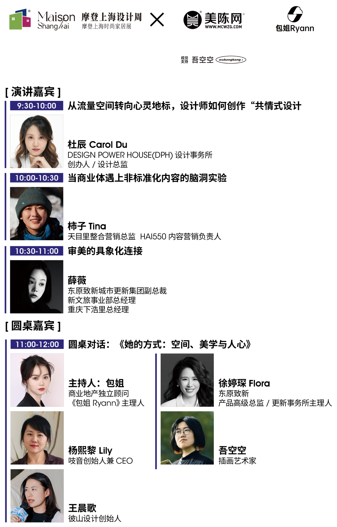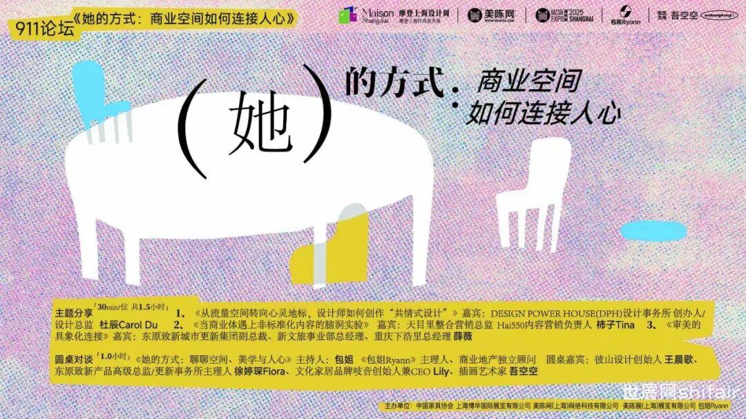 此外,9月11日9:30-12:00在H2M50论坛区将举办一场以“她的方式:商业空间如何连接人心”为主题的2025女性商业创新论坛,旨在深入探讨:女性从业者如何以其特有的感知力、共情力与叙事力,构建打动人心的商业空间。