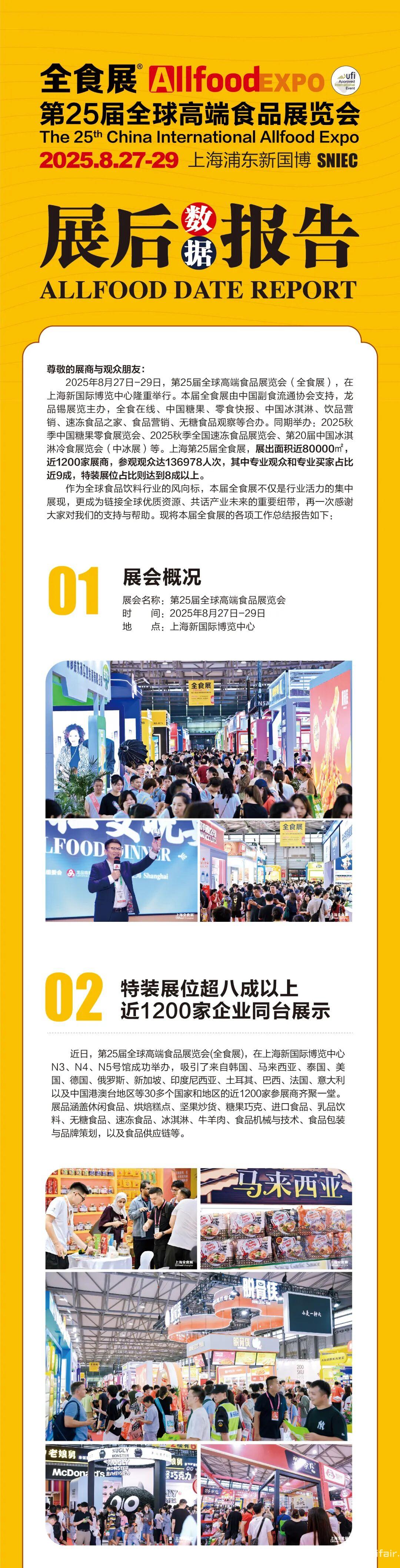 《全食在线》现将《2025上海秋季全食展展后数据报告》发布如下,带您在数据中领略本届展会的前沿与魅力。