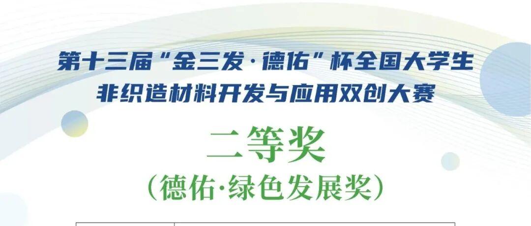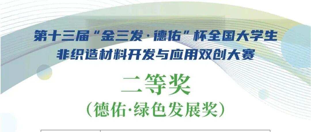 9月4日,第十三届“金三发·德佑”杯全国大学生非织造材料开发与应用双创大赛成果发布会在上海新国际博览中心举行。本届大赛共评出特等奖1项,一等奖3项(含“德佑·擦拭未来之星”1项),二等奖15项(含“德佑·绿色发展奖”5项),三等奖57项。其中,“德佑·擦拭未来之星”奖项从包装设计、材料选择、结构设计、成分功效等方面探索未来的擦拭产品形态与功能;“德佑·绿色发展奖”奖项从材料选择、工艺研究、加工整理、循环再生等方面探索擦拭产品的绿色发展。