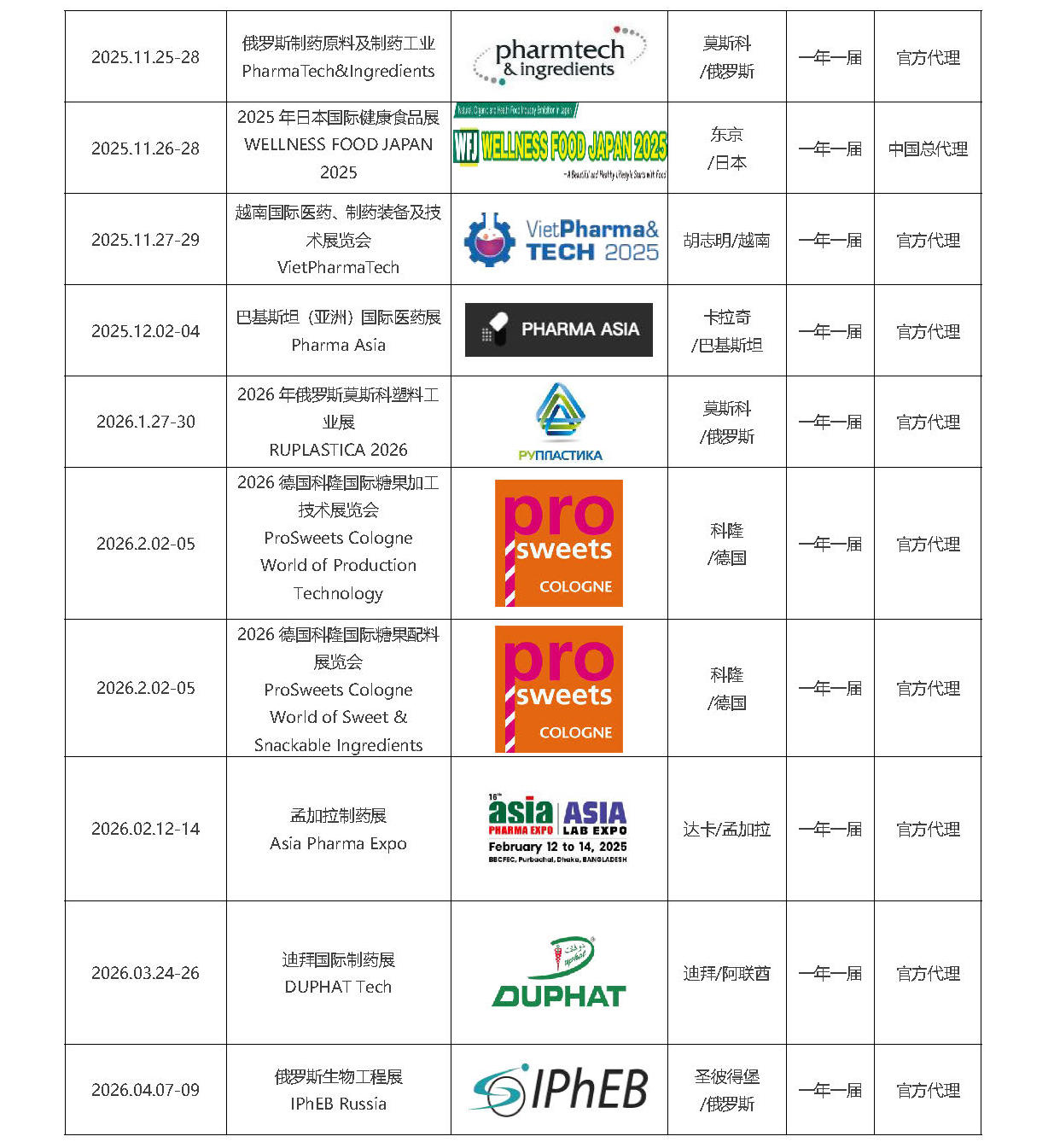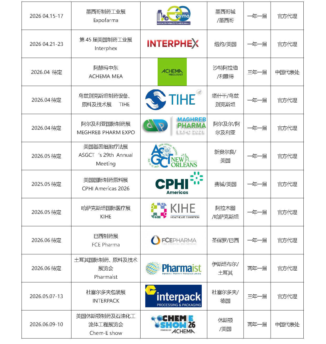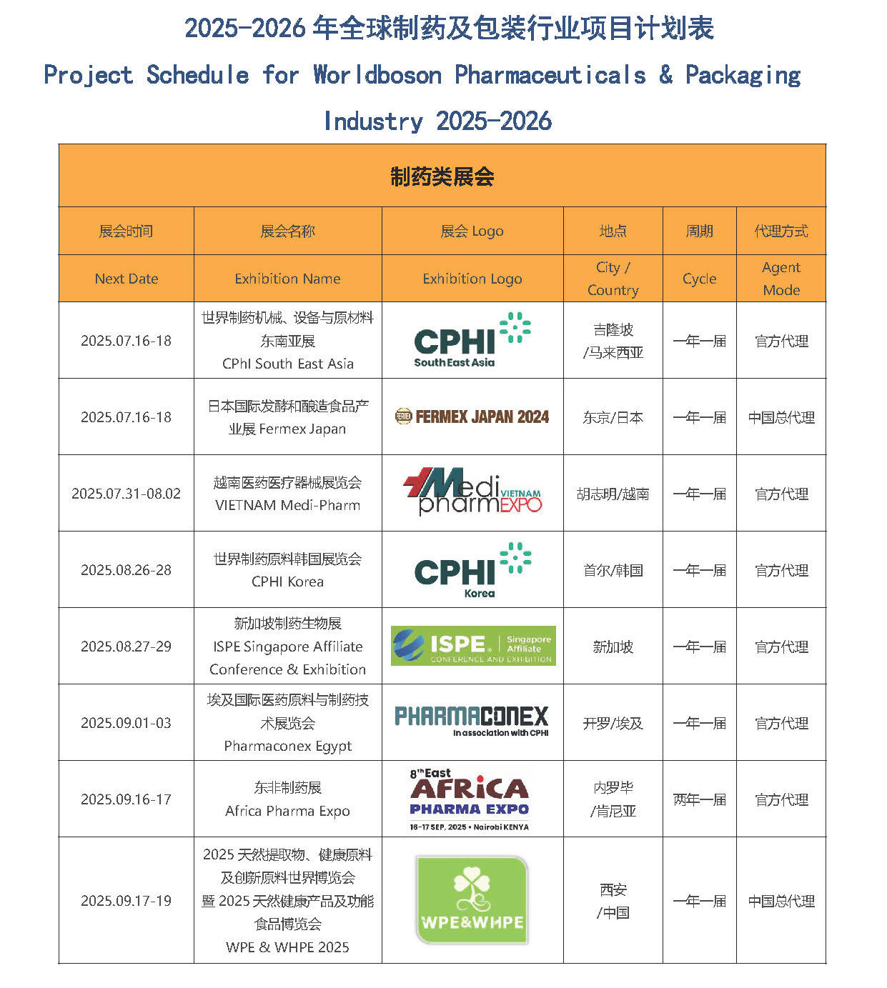 2025-2026 年全球制药及包装行业项目计划表