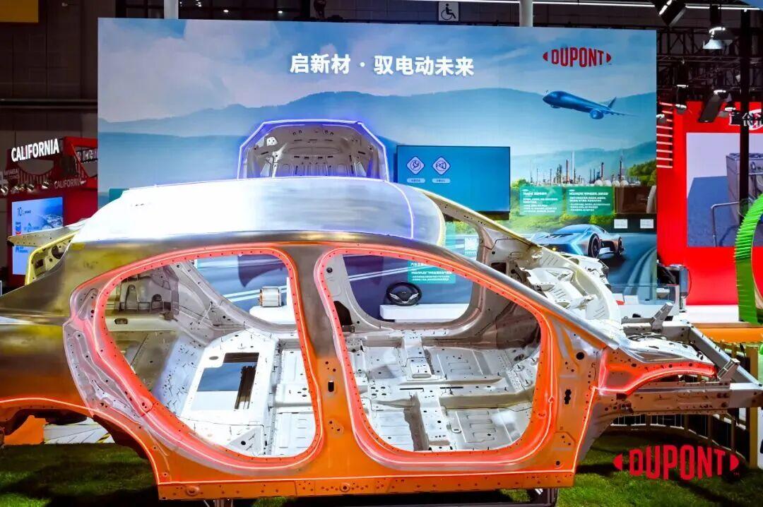 展会现场,一台完整搭载杜邦汽车粘接解决方案的白车身全方位呈现了杜邦高性能胶粘剂如何赋能轻量化,提升续航并筑牢电池安全防线。