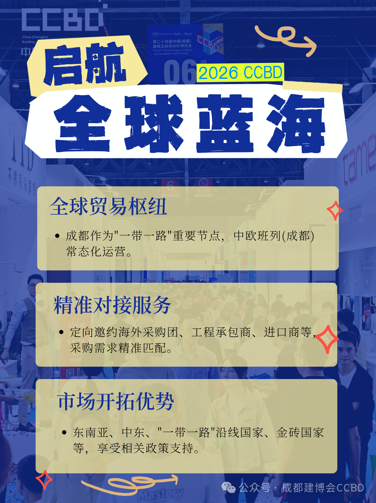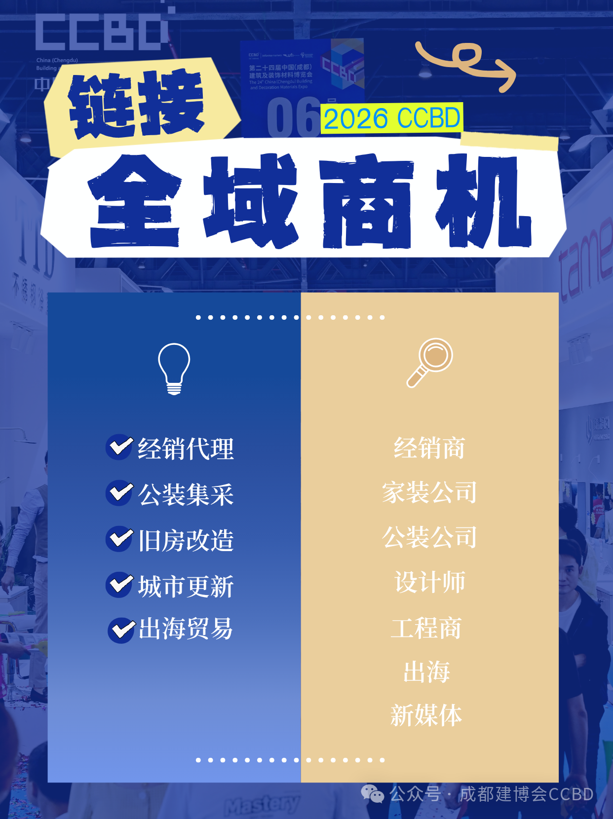 #2026中国成都建博会汇行业精英,促企业腾飞!#占中西部 必赴成都!#第25届中国成都建博会#一年一度中西部家居建材行业旗舰展 2026年4月16 - 18日 中国西部国际博览城 12大展馆 2000 + 参展商齐聚一堂 18万人次【川渝陕甘云贵等】经销商、采购商,精准辐射中西部广阔市场 【经销代理 + 公装集采 + 旧房改造 + 出海贸易】全方位、一站式对接!期待与您并肩同行,掘金中西部市场!稀缺黄金展位,火爆预订中!咨询参展请点击图中二维码咨询电话:072#成都建博会 #2026成都建博会 #精准对接 #中西部机遇 #企业破局 #经销商 #采购商 #设计 #装饰公司 #经销代理 #公装集采 #旧房改造 #出海贸易 #城市更新 #一站式对接 #黄金商机