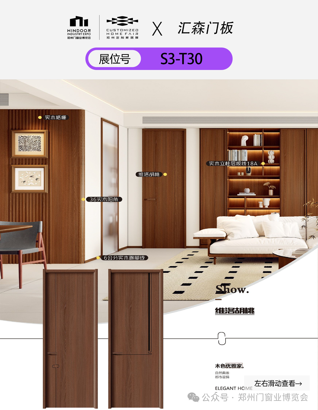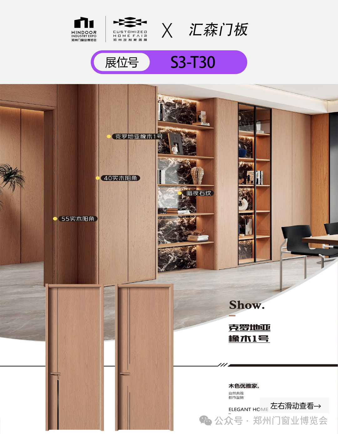 移师航空港,盛启新征程! 当匠心扎根同色定制领域,汇森门板——室内木门面板与同色门墙柜配套落地的专业服务商,以“诚信立企,创新赢市”之姿,携系列配套产品参展2026郑州门窗业暨整屋定制家居展,于郑州中原国际会展中心(航空港区),开启品质配套与客户共赢的新征程! 参展品牌:汇森门板展位号:S3-T30展览时间:2026年3月6-9日展览地点:郑州中原国际会展中心(航空港区) 作为2005年成立的资深品牌,汇森门板始终秉持“诚信、创新、客户至上”的企业原则,专注室内木门面板、同色家具柜体板、同色圆弧等产品研发与配套落地。依托专业高效团队与20余年行业经验,已成功服务木门工厂、定制工厂、装修公司等500余家客户,市场版图覆盖华北五省,以稳定品质与贴心服务筑牢行业口碑。 2026年3月6-9日,汇森门板将携同色门墙柜新品,邀您相聚郑州中原国际会展中心S3-T30展位,从木门面板的质感雕琢到柜体板的色彩统一,从圆弧构件的细节适配到全流程配套解决方案,为您全景呈现同色配套的空间适配之美与落地实力。