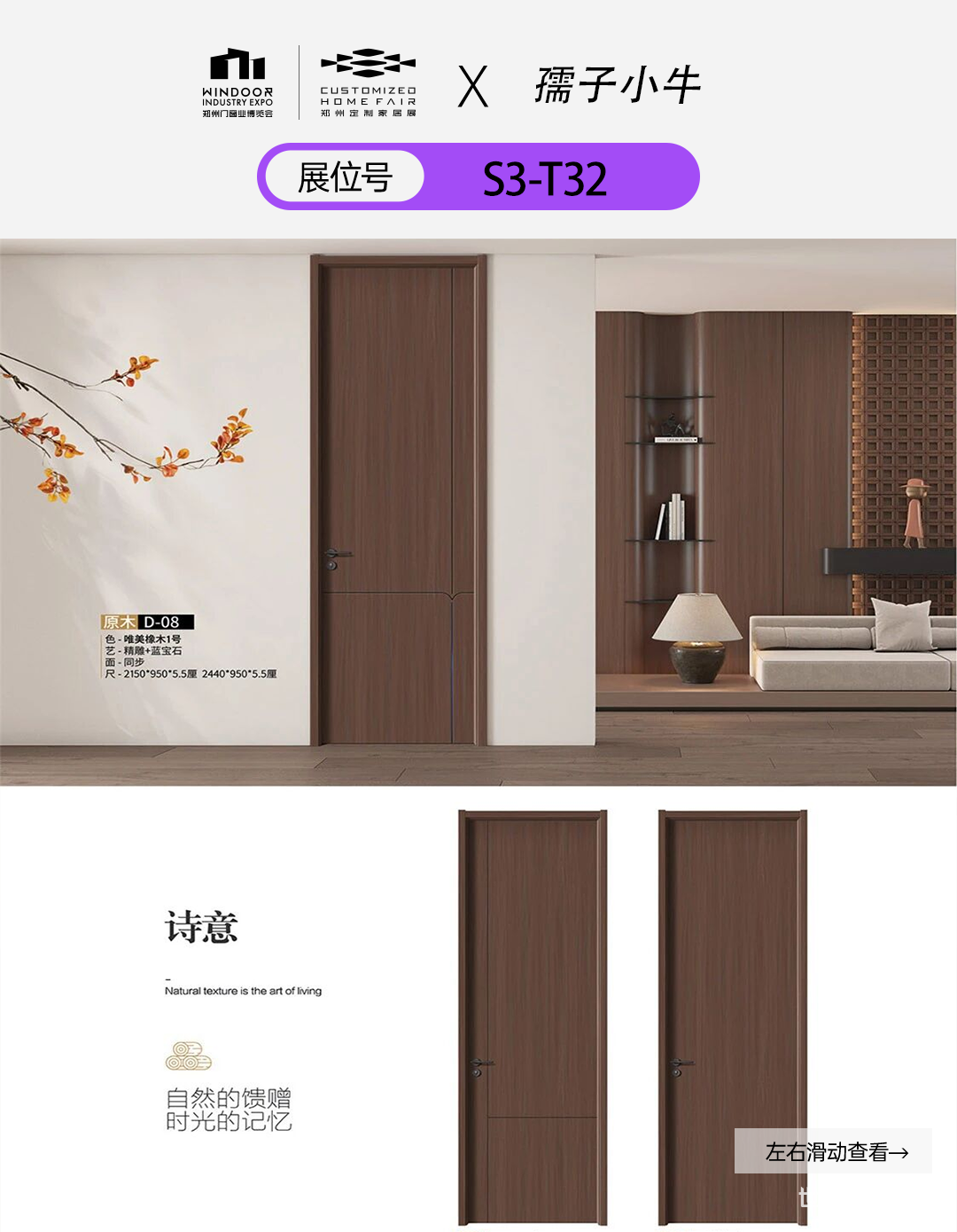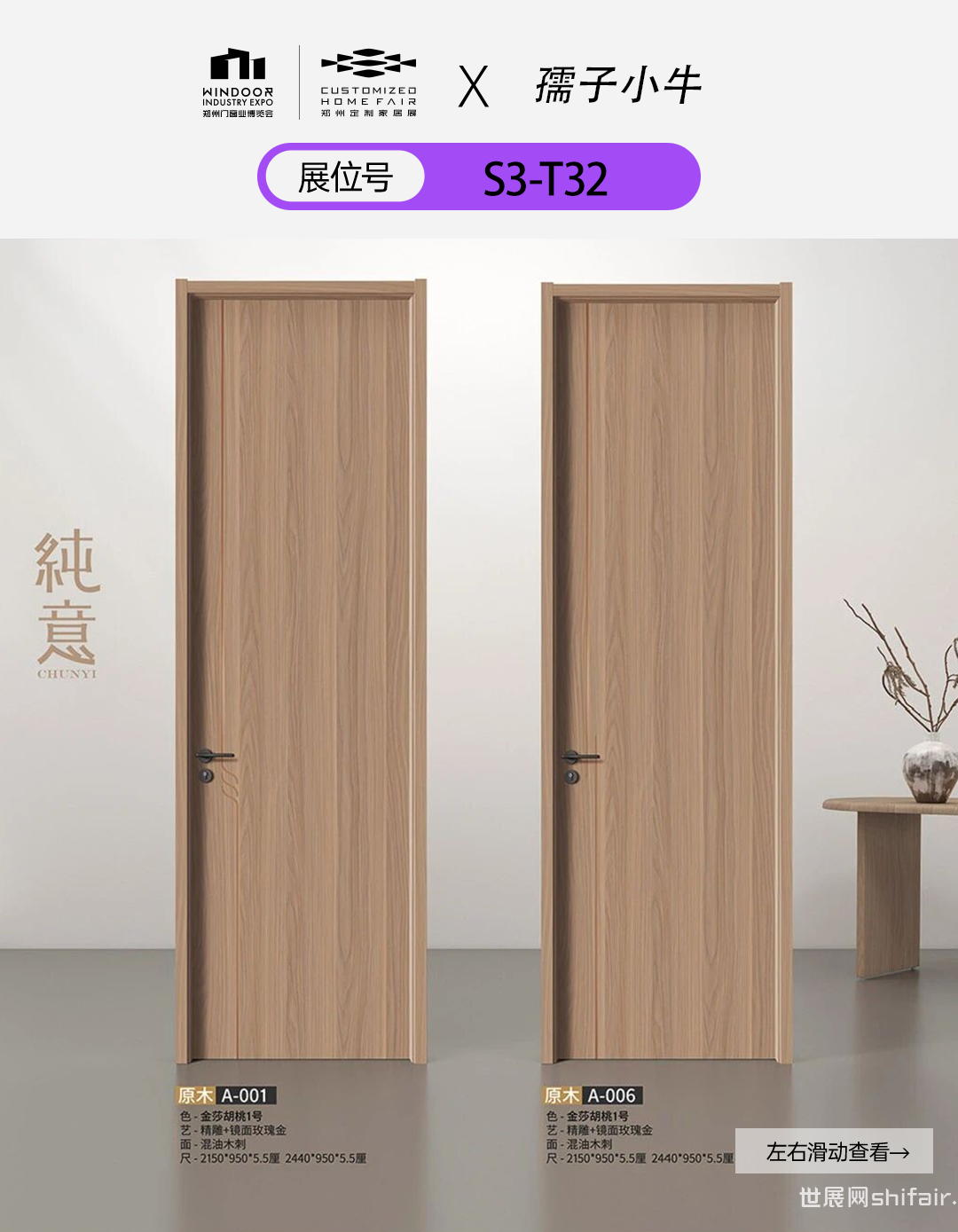 移师航空港,盛启新征程! 作为专注于木饰面板领域的新锐力量,孺子小牛将携全新系列产品强势登场2026郑州门窗业暨整屋定制家居及家具产业博览会。此次孺子小牛将以个性化定制为核心,打破传统木饰面板的设计局限,为追求轻奢质感的家居市场,带来兼具工艺精度与美学表达的创新解决方案。 参展品牌:孺子小牛展位号:S3-T32展览时间:2026年3月6-9日展览地点:郑州中原国际会展中心(航空港区) 孺子小牛面板生动诠释了现代家居美学,其以简约为设计内核,精选多样化材质面板,搭配雅致内敛的色调与干净利落的框架款式,用细腻纹理与流畅线条勾勒出轻奢韵味。这种“于简约中见精致,于内敛中藏张力”的产品表达,完美契合现代家居去繁就简、回归本真的流行风尚,让木饰面板成为连接木门、生活与自然的美学载体。 2026年3月6-9日,孺子小牛邀您相聚郑州中原国际会展中心S3-T32,近距离观赏品牌自主创新研发的精品木饰面板系列产品,感受视觉冲击与触觉感知并重的设计理念,领略前沿工艺的魅力,解锁属于自己的轻奢生活美学!