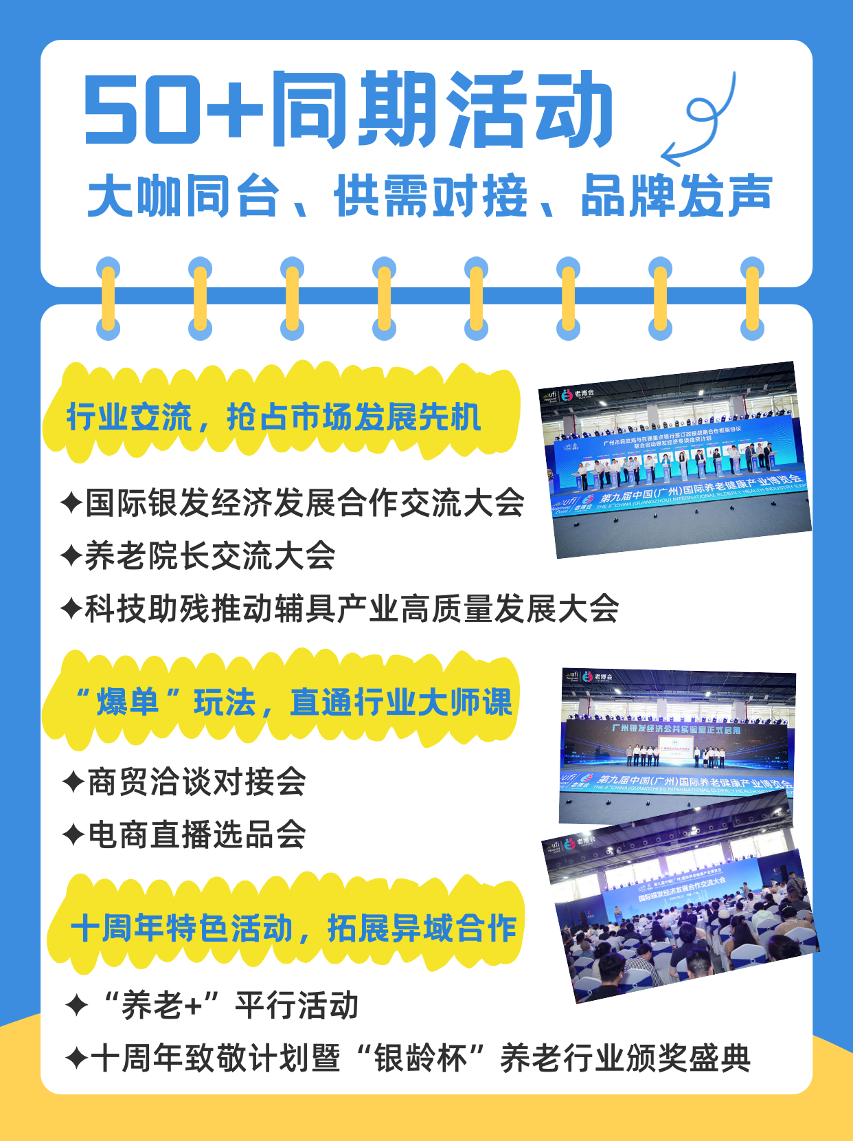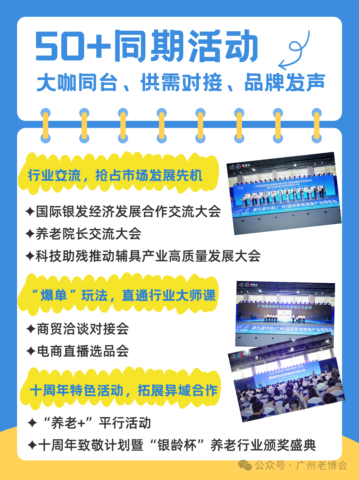 十年一遇!第十届中国(广州)国际养老健康产业博览会 时间:2026年08月21-23日 地点:广东广州·广交会展馆 组织机构主办单位:广州市人民政府负责单位:广州市民政局、广州市协作办公室、广州博览会组委会办公室承办单位:广东跨采展览有限公司、广东银龄健康产业股份有限公司 展会亮点广州市人民政府主办+UFI国际认证权威背书5万㎡超大规模,1000+品牌同台,10万+精准买家专属适老补贴+政府采购清单,资源对接一步到位50+场大咖峰会,从政策风向到市场订单一网打尽挖掘线上线下增量:参展送免费入驻「银龄好物」官方商城,推荐入驻多地银发经济展厅 早鸟钜惠倒计时!手慢无!即日起至2026年2月1日,单展 9 折!广州 + 西安双展联订直接85折!覆盖华南+西北两大核心市场,资源叠加回报翻倍,全国布局趁现在~ 速戳锁定展位邀请函 | 第十届中国(广州)国际养老健康产业博览会