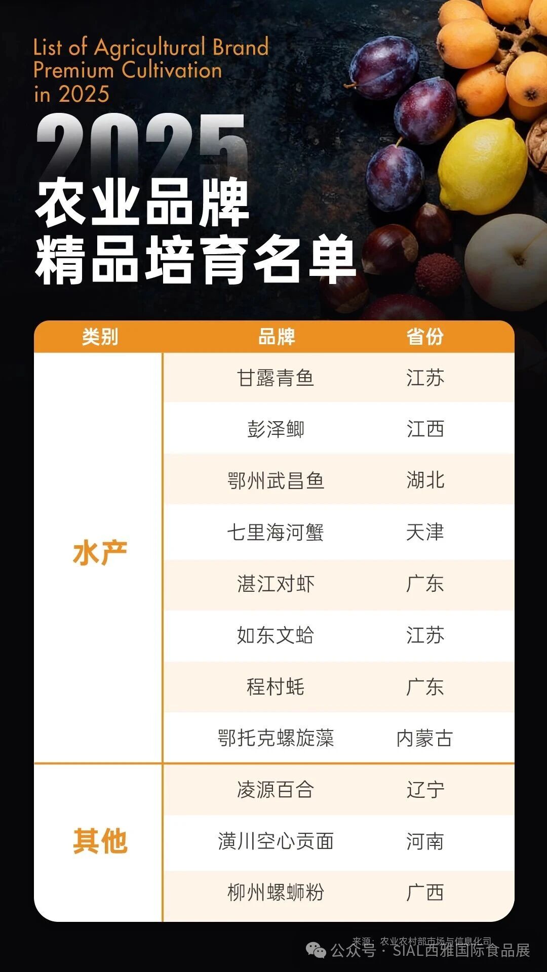 农业品牌是农产品的“身份证”,是农业进入市场的“通行证”。一个成熟的品牌,不仅能显著提升农产品的市场溢价能力,更是推动产业链整合、引导要素聚集的“磁力核心”。赣南脐橙、东港草莓、阿克苏苹果、增城荔枝……在街头巷尾的水果摊上,一年四季都有特色水果供应;打开购物网站,只需一键加购,阳澄湖大闸蟹、海南文昌鸡、平凉红牛等各地的土特产就带动了千山万水来到消费者的餐桌。当前,我国县域富民产业发展呈现出积极态势,特色农业蓬勃发展,农产品加工业规模稳步壮大,乡村旅游、农村电商等新业态加速涌现,苹果、木耳、黄花、金橘、咖啡等各具特色的农产品种植成为当地农民群众增收致富的支柱产业。从2017年定为“农业品牌推进年”至今,农业农村部强化品牌引领消费,深入实施农业品牌精品培育计划,完善省级农业品牌目录,1400多个农产品区域公用品牌、2000多个企业品牌和2300多个绿色优质产品品牌纳入了目录重点培育,推动品牌目录转化为消费目录。2024年,全国农村网络零售额达2.56万亿元,同比增长6.4%;农产品网络零售额突破6,300亿元,同比增长 15.8%。在产品创新方面,功能性食品、即食休闲农产品等新兴品类快速崛起。全国规模以上农产品加工企业营业收入超过18万亿元,农产品加工业产值与农业总产值比达到2.61。作为SIAL世界三大食品展之一,SIAL西雅国际食品展致力于将中国地方特色产品推向全国、走向世界,支持各省市地方政府、商协会组织区域特色食饮企业集体亮相,助力“地域特产”升级为“国民爆品”,推动农产品热销与助农增收,激活乡村振兴共富新动能。2025 年现场累计促成近 2 万场商贸配对,实现洽谈至合作的无缝转化,助力区域名优产品快速切入长三角、大湾区等核心高价值市场。2026年,SIAL西雅展将继续秉承"Inspire Food Business”的核心价值理念,通过主题展区、产销对接、直播推介等多维方式,为每一味地方风潮提供发声的舞台、合作的桥梁、增长的引擎,让世界尝到中国的味道,让地方走向全球的舞台。SIAL西雅国际食品和饮料展览会(上海)展会时间:2026年5月18-20日展会地址:上海新国际博览中心展出面积:200,000平方米展商数量:5,000+参展企业观众人数:180,000+专业人士咨询电话 / 邮箱 /