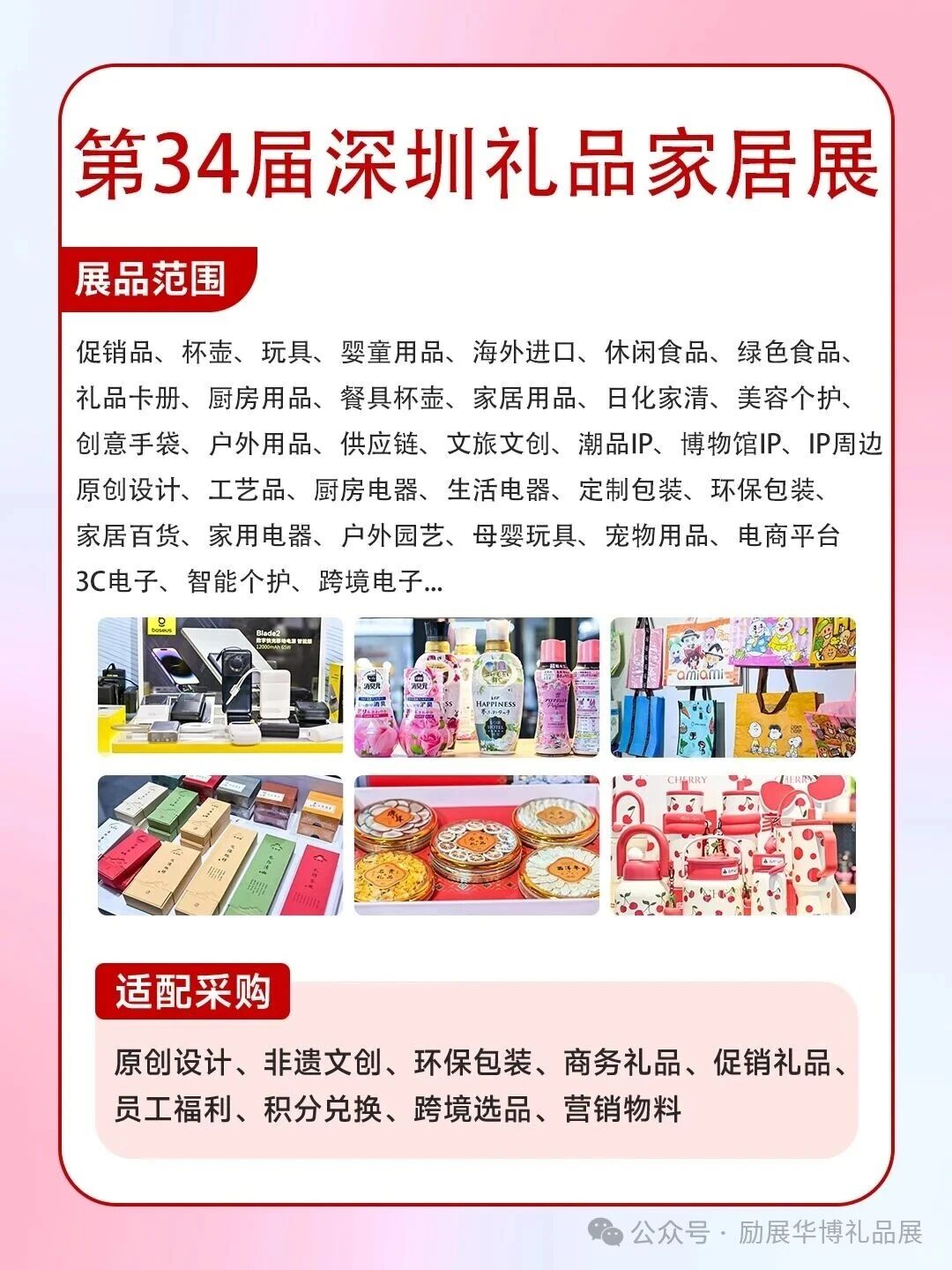 逛全场26万㎡礼品海洋!采购、淘货、探趋势、拓商机...…4.25-28 不见不散 【展会亮点】规模盛大:26 万㎡展区、4500+ 展商、30万+买家汇聚,选择更丰富品类齐全:百万款好物覆盖30+热门品类,一站式选品、采购、合作高性价比:源头工厂直供,降低采购成本,个人与企业都适用拓展商机:20+场行业论坛,掌握前沿趋势,对接优质资源【开展信息】展会时间:4月25日-28日 地点:深圳国际会展中心(宝安新馆)【立即免费领票】