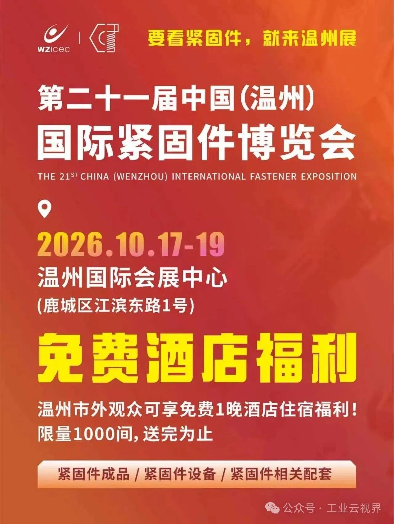 3 月 30 日,深圳市紧固件行业协会 2026 年春茗会圆满召开,行业精英齐聚一堂,共话产业高质量发展新路径,2026 温州国际紧固件展作为核心招商平台被重点推介。展会将于2026 年 10 月 17-19 日在温州会展中心盛大启幕,依托温州雄厚产业根基,为企业提供直达源头的一站式平台:有规模:温州作为 “中国紧固件之城”,年产值超 300 亿元,占全国市场份额四分之一,稳居全国三大产业基地之一。有特色:汇聚超 3000 家生产企业,形成龙湾非标件、乐清电器配套紧固件、瑞安汽摩配专用紧固件等协同产业集群。有活力:大力推进 “机器换人”,高成长性企业不断涌现,产业正加速从 “制造” 迈向 “智造”。不少参会企业表示,将积极报名参展参观,借助第 21 届温州国际紧固件展的平台势能,深化与珠三角产业协同,共推中国紧固件产业向高端化、智能化迈进。