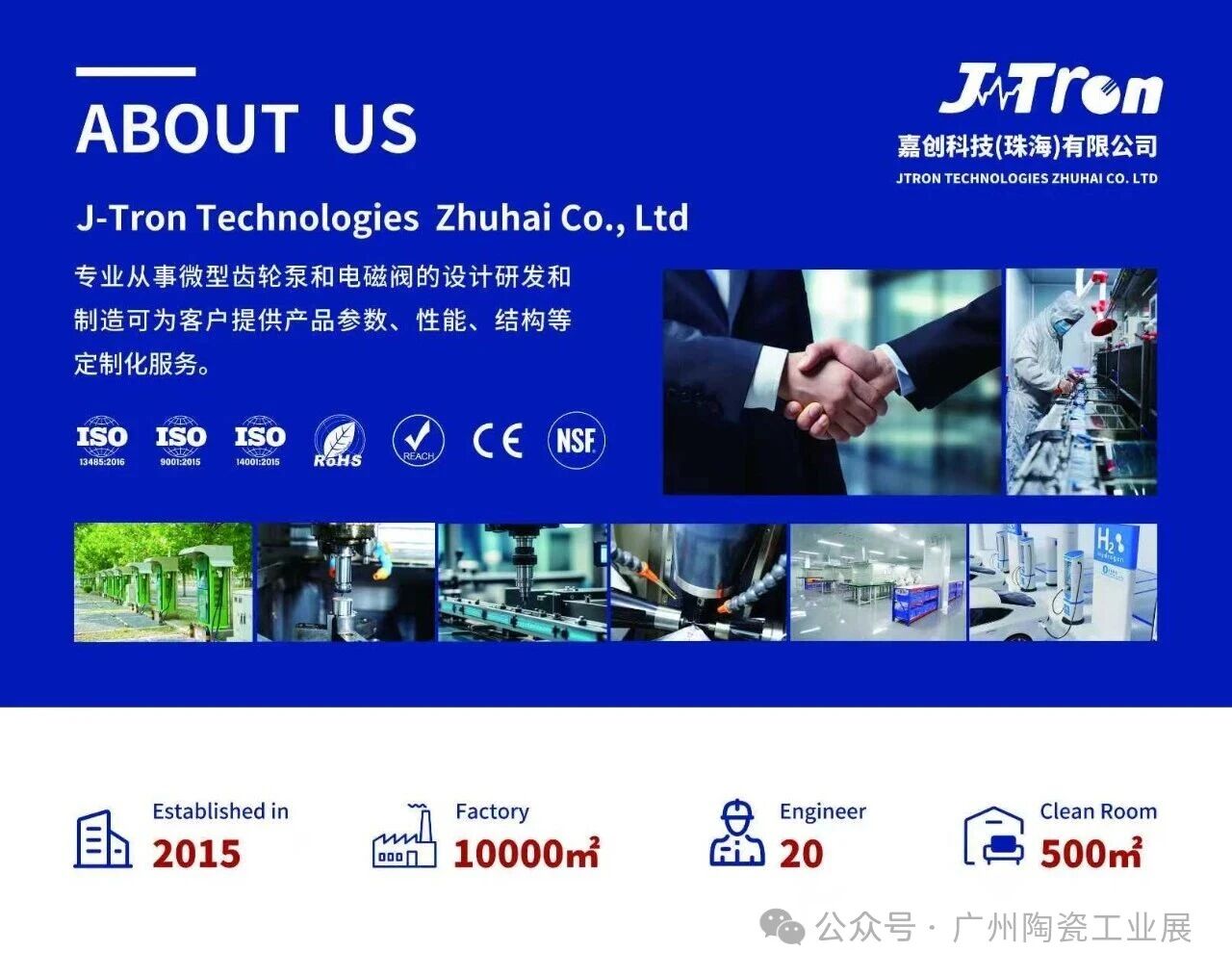 产品介绍:●抗磨损喷墨齿轮泵:嘉创喷墨泵GPC/GPP系列耐常见腐蚀性化学品,悬浮液。316不锈钢铸造, 氮化钛涂层金色泵。超2万小时寿命测试,性能跻身国际一流水平。自研可调速无刷电机,可处理颜料墨水、悬浮墨水。广泛用于喷码机、数码印花机、打印机,也可用于点胶机。●通用齿轮泵:嘉创通用型泵,GPI系列以耐腐蚀、精准计量、流量稳定、低噪音为特点。最大压差可达20Bar。通体316不锈钢制造。测试寿命超2万5千小时,自吸能力强,最大进口负压可达-1.0Bar,以满足不同流量和压力需求。可以适用于大部分工作场景。●直动式微型电磁阀:嘉创电磁阀在耐高低温、耐酸碱、耐磨、稳定性、自润滑性方面表现优异。可与多种流体兼容,能长期为您的设备控制流体或气体。密封件不会高温热形变。紧凑型设计,小内径,响应快。●隔膜气泵:嘉创隔膜气泵采用高级定制EPDM隔膜,确保气体传输零污染,同时耐腐蚀结构可应对强酸强碱环境,实现超静音运行,并支持干转自吸操作,可连续无故障运行超过18000小时。公司介绍:嘉创科技(珠海)有限公司成立于2015年,专业从事微型齿轮泵和电磁阀的设计研发和制造,并提供定制化服务。公司立足珠海联港工业区,占地超10000㎡,产品制造中心面积2500㎡,其中500㎡十万级无尘车间用于精密零件装配与测试。零部件加工中心面积8000㎡,用于机加、注塑和精密加工等。拥有多项国家专利、ISO认证和自研制造、测试设备。我们服务于多个行业领域,致力于运用跨学科知识设计出最具技术可行性的方案,以满足客户的独特要求和预算。展会时间:6月24-27日第40届中国国际陶瓷工业展 【5.1馆 E053】 展会地点:广州广交会展馆A区#嘉创科技(珠海)有限公司 盛邀您莅临!参观登记:个人参观请打开小程序进行登记团体参观请联系:萧小姐