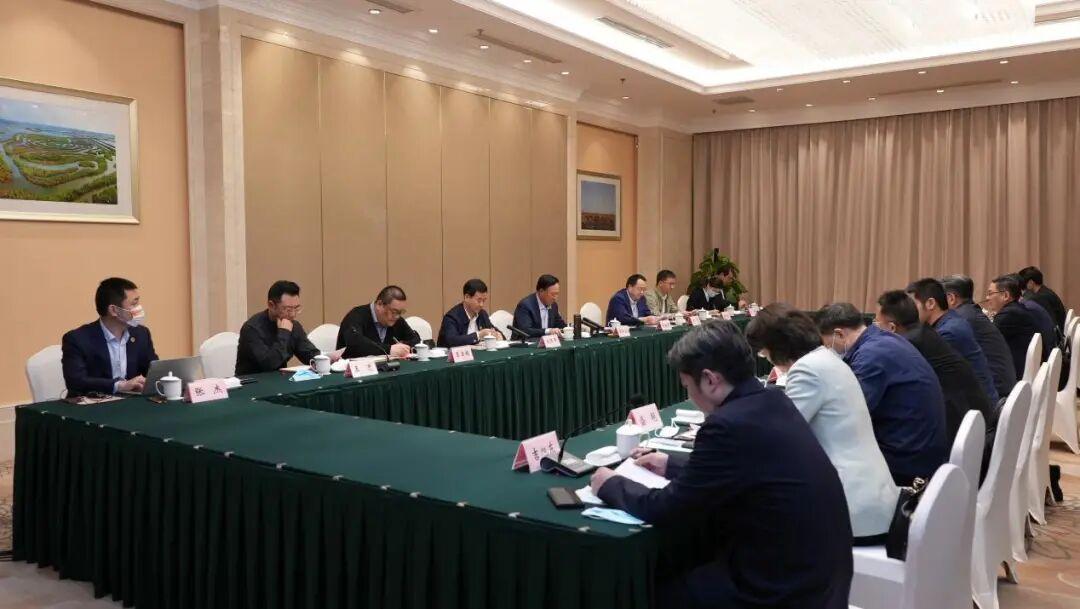 2022年10月12日,中国环境保护产业协会党委书记、会长郭承站一行与盐城市市委副书记、市长周斌在盐城座谈交流。