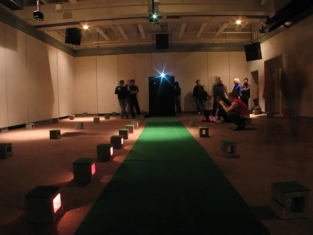 在一定程度上,这些早期的装置是一项巨大的工作量,但它们总是很有趣。在为Martha Schwartz的讲座设计艺术装置时,我们有一大群同学朋友会定期加入并帮助我们,那时我们连续工作了几个晚上来布置房间和避免因重新布置校园的局部空间而惹上麻烦。