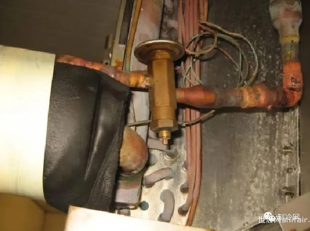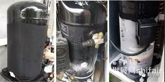 原因分析显然,能引起压缩机液击的液体不外乎如下几种来源:1、回液,即从蒸发器中流回压缩机的液态制冷剂或润滑油;2、带液启动时的泡沫;3、压缩机内的润滑油太多。(1)、回液:通常,回液是指压缩机运行时蒸发器中的液态制冷剂,通过吸气管路回到压缩机的现象或过程。对于使用膨胀阀的制冷系统,回液与膨胀阀选型和使用不当密切相关。膨胀阀选型过大、过热度设定太小、感温包安装方法不正确或绝热包扎破损、膨胀阀失灵都可能造成回液。对于使用毛细管的小制冷系统而言,加液量过大会引起回液。利用热气融霜的系统容易发生回液。无论采用四通阀进行热泵运行,还是采用热气旁通阀时的制冷运行,热气融霜后会在蒸发器内形成大量液体,这些液体在随后的制冷运行开始时既有可能回到压缩机。此外,蒸发器结霜严重或风扇故障时传热变差,未蒸发的液体会引起回液。冷库温度频繁波动也会引起膨胀阀反应失灵而引起回液。回液引起的液击事故大多发生在空气冷却型( 简称风冷或空冷 )半封闭压缩机和单机双级压缩机中,因为这些压缩机的气缸与回气管是直接相通的,一旦回液,就很容易引发液击事故。即使没有引起液击,回液进入汽缸将稀释或冲刷掉活塞及汽缸壁上的润滑油,加剧活塞磨损。对于回气 ( 制冷剂蒸汽 )冷却型半封闭和全封闭压缩机,回液很少引起液击。但会稀释曲轴箱内的润滑油。含有大量液态制冷剂的润滑油粘度低,在摩擦面不能形成足够的油膜,导致运动件的快速磨损。另外,润滑油中的制冷剂在输送过程中遇热会沸腾,影响润滑油的正常输送。而距离油泵越远,问题就越明显越严重。如果电机端的轴承发生严重的磨损,曲轴可能向一侧沉降,容易导致定子扫膛及电机烧毁。显然,回液不仅会引起液击,还会稀释润滑油造成磨损。磨损时电机的负荷和电流会大大增加,久而久之将引起电机故障。对于回液较难避免的制冷系统,安装气液分离器和采用抽空停机控制,可以有效阻止或降低回液的危害。