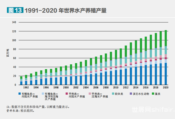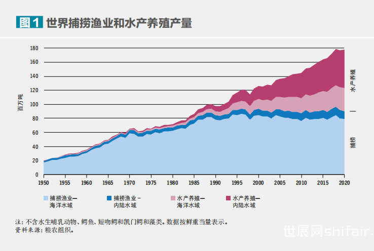 在今年9月举行的罗马-联合国粮食及农业组织(粮农组织)渔业委员会(渔委)第三十五届会议开幕式上,粮农组织总干事屈冬玉博士指出,渔业及水产养殖业可为改善全球粮食安全和营养状况做出更多贡献,但仍需再接再厉,确保进一步提质增效,实现包容和可持续发展,同时认可小规模渔民以及养殖户所发挥的重要作用。水产人,加油干!水产食品对保障粮食安全贡献显著《2022年世界渔业和水产养殖状况》报告指出,随着水产养殖业的显著增长,全球渔业和水产养殖产量创下历史新高,水产食品对保障21世纪的粮食安全和营养做出了日益重要的贡献。受全球、特别是亚洲水产养殖业增长的推动,2020年渔业和水产养殖总产量上升至历史最高水平,达2.14亿吨,其中1.78亿吨为水生动物,3600万吨为藻类。
