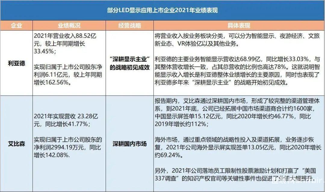 六家显示屏企业发布的财报里,除了披露了2021相关业绩和对业绩情况进行了说明之外,还进一步讲解了公司的经营状况和经营战略,均有不少亮点呈现。利亚德坚持“深耕显示主业”战略并初见成效;去年承接了一些重大活动,建党百年,总书记的天地对话,党史馆建设,尤其是伟大征程演出活动我们在鸟巢提供的上万平米的 LED显示屏等,效果非常震撼,公司投入也非常大。去年一年公司为政府大型活动提供的服务,利亚德在产能各方面的工作量是巨大的,收益还不错,更重要的是我们的荣誉、品牌、知名度、影响力方面得到了大幅提升。