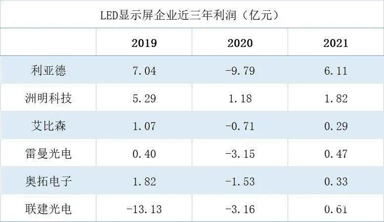 翻开这几家企业的年报,映入眼帘的是一片红色,各家企业都实现营利双增,业绩十分亮眼!从整体来看,六家LED显示屏企业总营收为217.08亿元,相比去年同期的160.12亿元,今年涨幅超过35%,行业整体向好;对比在疫情发生前的2019年,这五家企业的总营收约为220.48亿元,2021年总业绩217.08亿元与之相对持平,说明LED显示屏产业已复苏到疫情前水平,企业也已找到疫情常态化下正确的发展路径。