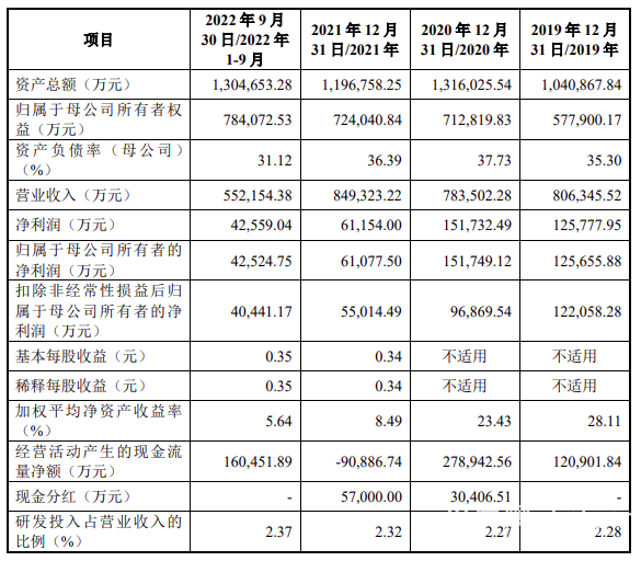 招股书显示,新明珠集团2019年、2020年、2021年和2022年1-9月营业收入分别为80.63亿元、78.35亿元、84.93亿元和55.21亿元,同期净利润分别为12.58亿元、9.68亿元、5.5亿元和4.04亿元。此外,报告期各期末,新明珠集团应收款项(含应收商业承兑汇票和应收账款)合计余额分别为 22.63亿元、26.75亿元、29.56亿元和 29.29亿元。报告期内,其部分工程客户出现流动性风险和债务危机,导致无法及时收回相关款项。由此可见,大额坏账对新明珠的净利润也造成较大冲击。招股书显示,2021年,新明珠集团经营性现金流已出现超9亿元的窟窿,而2022年1-9月经营性现金流则变为16.5亿元,可见其现金流波动幅度较大。