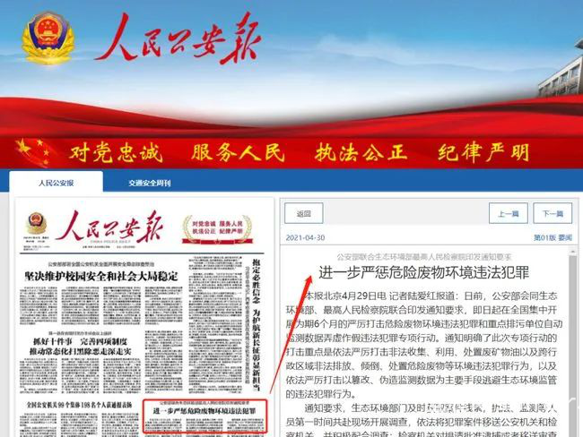 2020年7月,生态环境部、公安部、最高检第一次联手,于2020年7月至11月,组织全国生态环境部门、公安机关、检察机关开展严厉打击危险废物环境违法犯罪行为的活动。